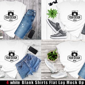 4 Negro En Blanco Flat Lays Mockup Camiseta Camiseta Mockup Etsy